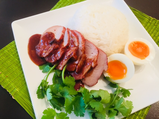 タイ料理 · 2019/02/13 カオムーデーン カオムーデーン(タイチャーシューのせご飯) タイではポピュラーなご飯もの。自然な色と深い味わいを出すのに、サラデーンキッチンでは、豆腐餻と調味料で下味を漬けています。ふっくらジューシーに仕上げるのがコツ。旨味が凝縮した煮汁でタレを作り、ご飯、茹で卵を添えて完成。近々レッスン予定です! tagPlaceholderカテゴリ: タイ料理教室